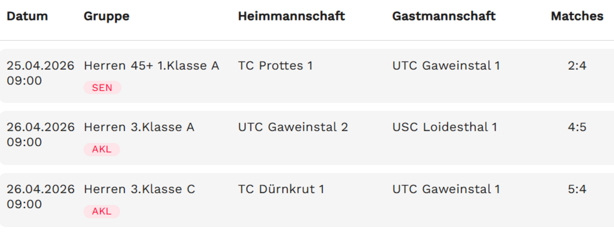 Gerald Epp, 04. April 2026 Mehr dazuAlle Events 2026 des UTC Gaweinstal